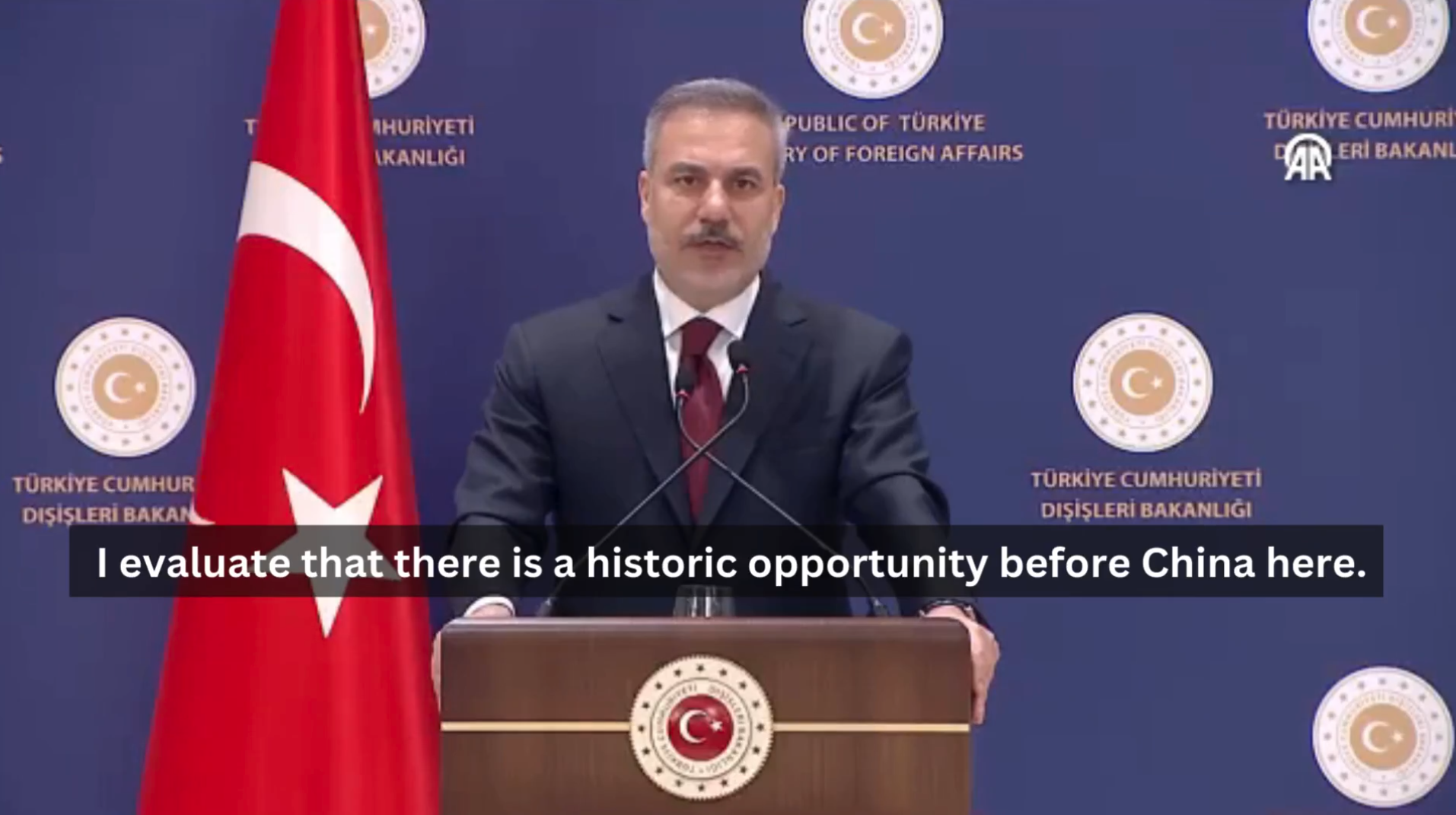 Фидан йәнә түркийәниң уйғур мәсилисидики мәвқәйи тоғрисида тохтилип, буни хитай үчүн бир «тарихий пурсәт» вә «өзара мәнпәәт йәткүзүш» дәп тәсвирлиди.